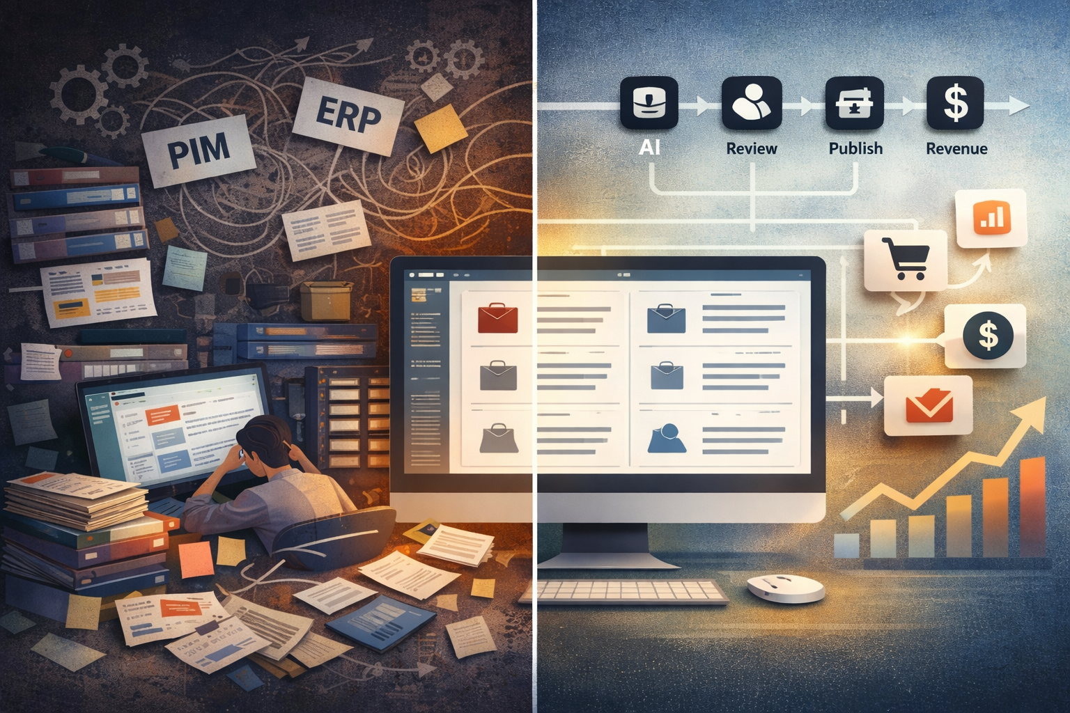 Let’s start with a scenario that likely sounds familiar: you have hundreds of thousands — if not millions — of SKUs that need to stay up-to-date. This product data comes from several sources such as your PIM, ERP or supplier catalogs. And this means your teams spend a lot of time aggregating data at the expense of more valuable work.